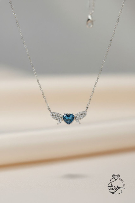 پلاک گردنی زنانه قلب بالدار نقره عیار 925 سنگ سوارفسکی وزن 2.8 گرم